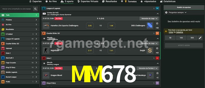 A aposta MM678 oferece aos jogadores a experiência mais conveniente de apostas em eSports!